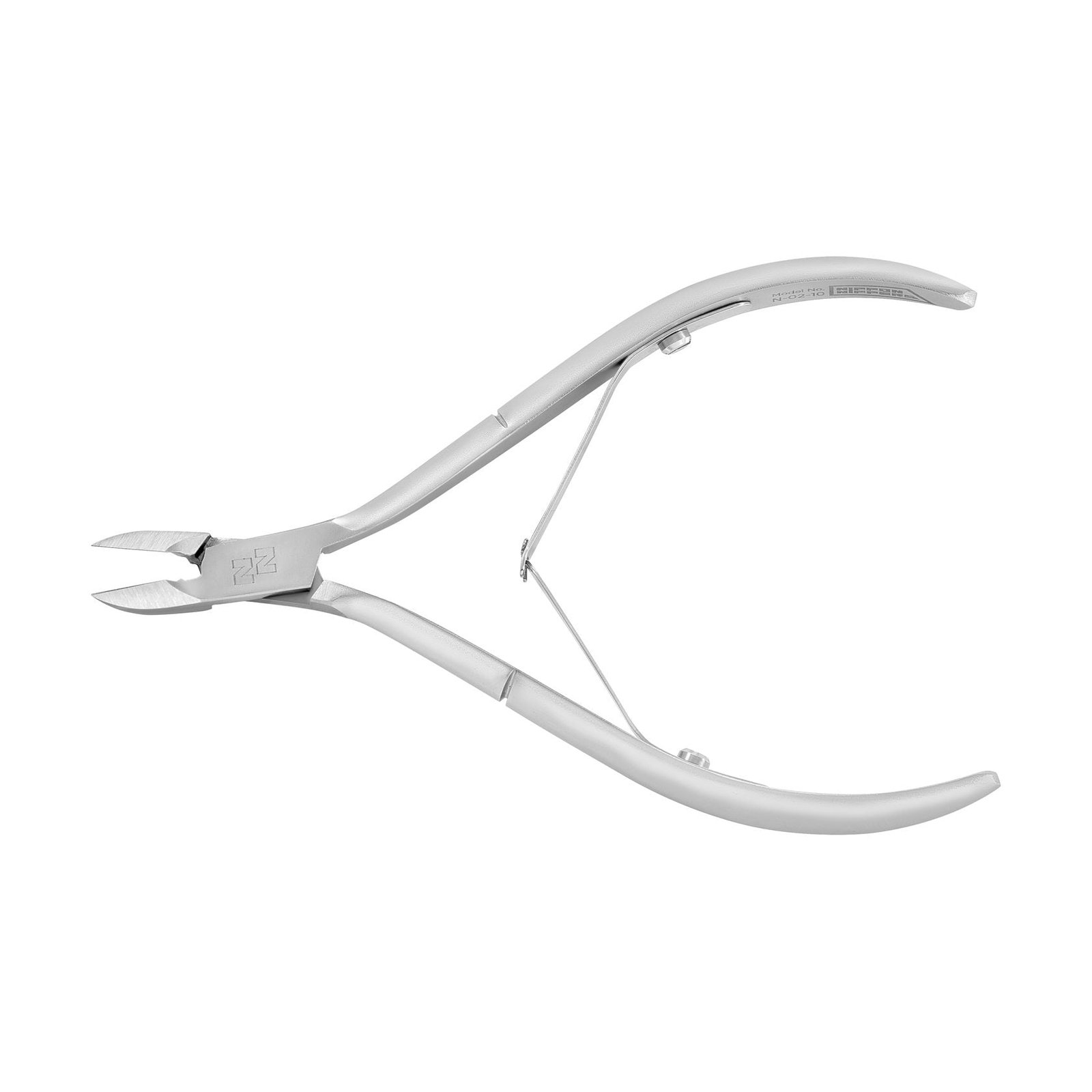 Cuticle Nippers with short handles, rounded ends, and elongated blades. The low blade angle reduces shoulder strain during use. The tool is sharpened and fully ready for work. The nippers are made of stainless steel, hardened to a strength of 53-55 HRC. Designed for professional use, they can undergo all types of sanitary treatment.